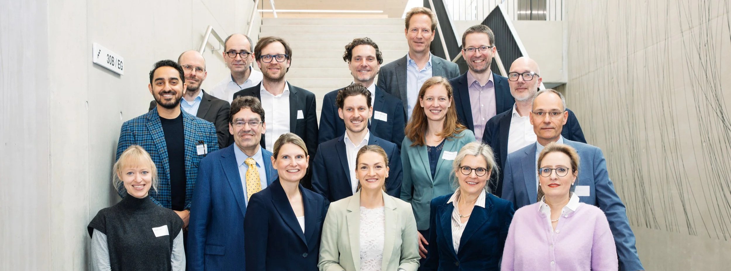 Picture shows affiliated professors and on the bottom right Staatsministerin Judith Gerlach, TUM-Vice-President Prof. Juliane Winkelmann, and Dean Prof. Stephanie Combs ©StmGP Bayern
